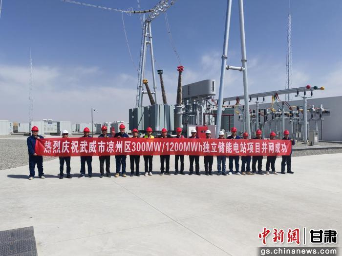 图为工作人员庆祝并网成功。资料图片武威华景领航电力有限公司300MW/1200MWh独立储能电站项目经理张涛介绍说:“武威市凉州区300MW/1200MWh独立储能电站项目由武威华景领航电力有限公司投资建设。项目于2025年8月1日开工建设,2026年3月31日成功并网。目前正在紧锣密鼓地进行储能区的调试工作以及接下来的涉网试验工作,计划于2026年4月30日前完成商用。”