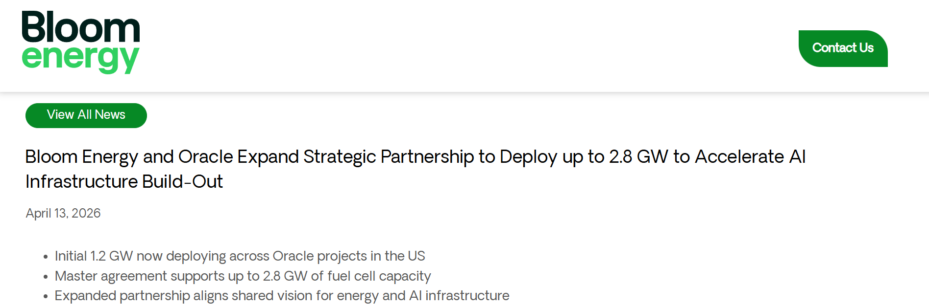 作为该协议的一部分,初始的1.2吉瓦容量已经完成签约,部署正在进行中,并将持续到明年。Bloom的燃料电池将支持甲骨文在美国的项目,并帮助满足其尖端云基础设施的需求。