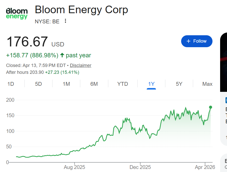 Bloom Energy总部位于加利福尼亚州圣何塞,是一家专注于分布式发电的燃料电池企业。在人工智能热潮推动下,各大数据中心开发商正在寻找替代能源以满足不断增长的需求,而Bloom Energy就成为这一热潮的直接受益者——因为该公司的燃料电池能够提供现场电力,且安装迅速,因为它们无需与电网相连。